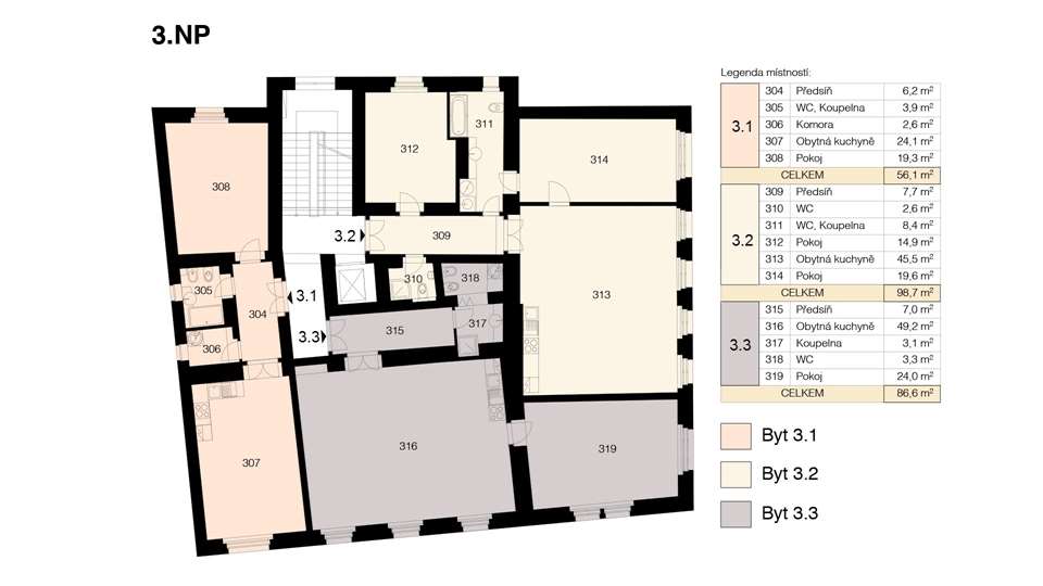 Za zmínku stojí zejména dispozice bytů, stavebně technická řešení a celková kvalita bydlení za požadovanou cenu v daném místě. Ve všech bytech jsou dřevěné či parketové podlahy, obložkové dřevěné dveře, dřevěná, zároveň velmi dobře hlukově i tepelně izolovaná okna, apod. Na druhou stranu vše řešeno nově a moderně celkovou rekonstrukcí. Energeticky se bude jednat o velmi úsporné bydlení s centrální plynovou kotelnou, kdy je každý byt „měřen“ zcela samostatně ve všech ohledech měření spotřeby, tedy vody, el. energie a tepla. K vytápění bude použito nejmodernějších úsporných technologií generálního vytápění, které má zcela shodné parametry jako vytápění individuální.